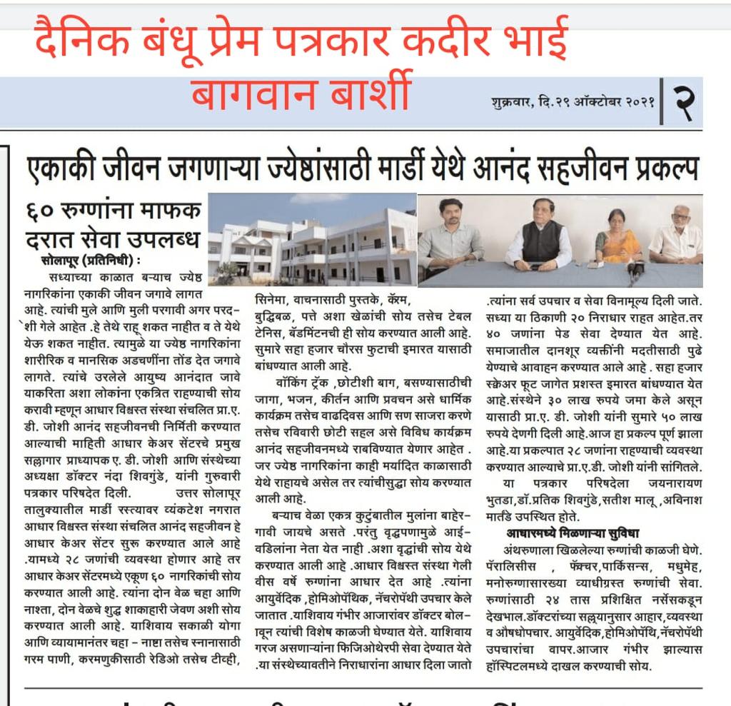 4) A.D. Joshi Anand Sahjeevan : Happy Home for elderly
