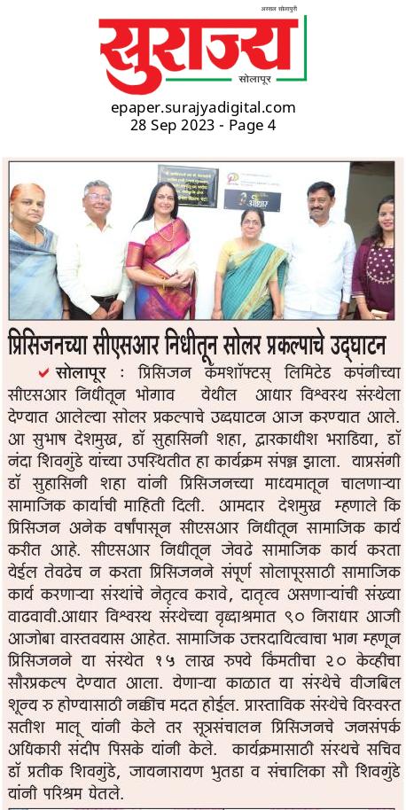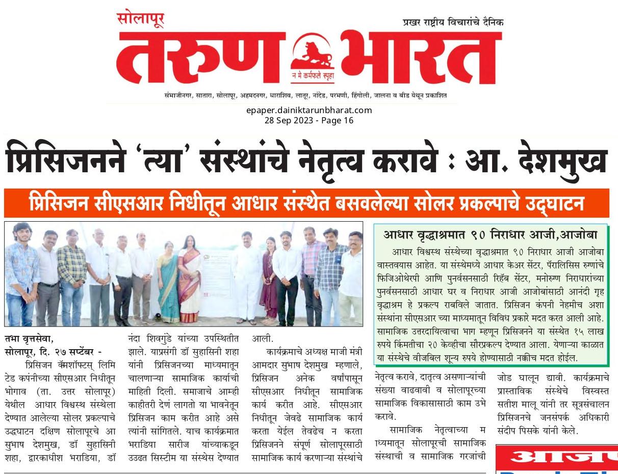 By taking this as our motto we have founded Adhar Vishwasth Sanstha in 2001. The main vision of this Sanstha is to provide services to them who can not take care of them self and always need an assistance.