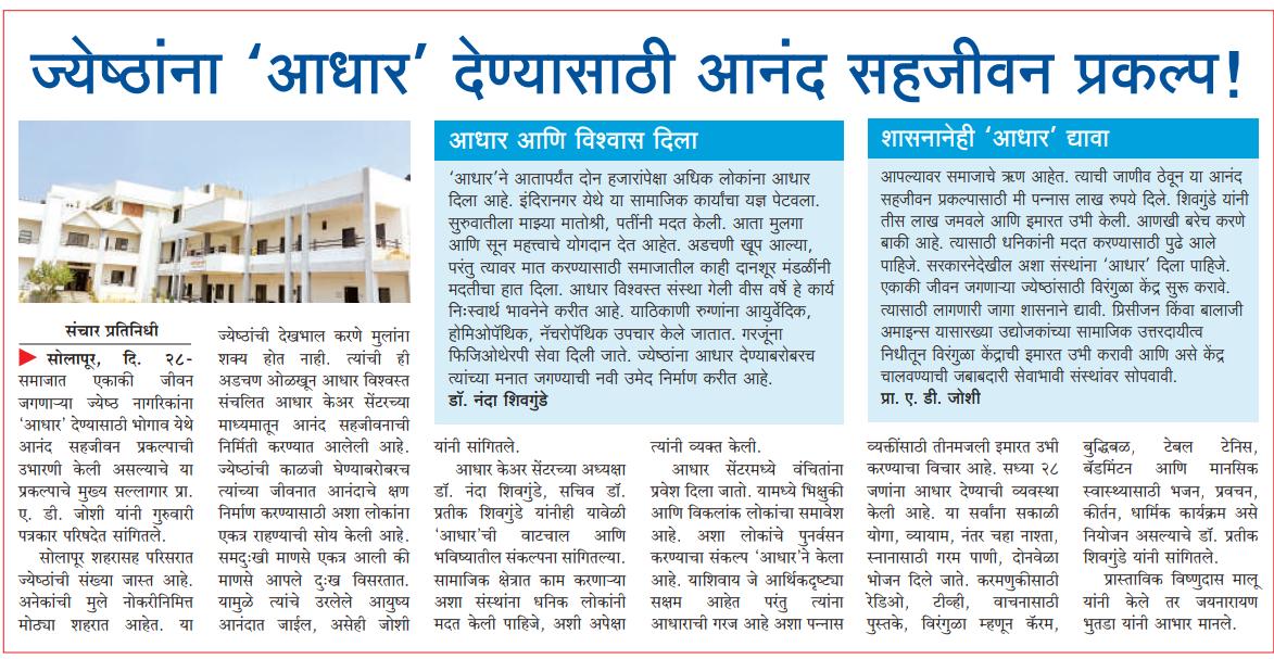 4) A.D. Joshi Anand Sahjeevan : Happy Home for elderly